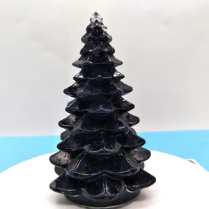 The „Midnight Glow Pine” is an orgonite pine tree made with blue sandstone crystals, evoking the stars of the night and filling the space with captivating radiance.