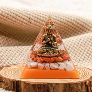 The „ Inner Peace and Happiness Buddha” Orgonite Pyramid is a powerful energetic tool that helps maintain harmony in your home or workplace.