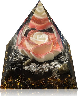 This unique pyramid combines the enchanting beauty of a red and white rose with the protective strength of obsidian crystals, helping you connect with inner peace and fortifying your spirit each day.