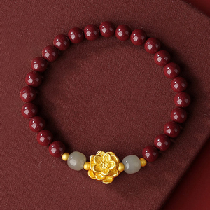 - Harmonious design: The bracelet features 6 mm cinnabar beads and a 12 mm sterling silver lotus motif, with a total of approximately 23 beads.