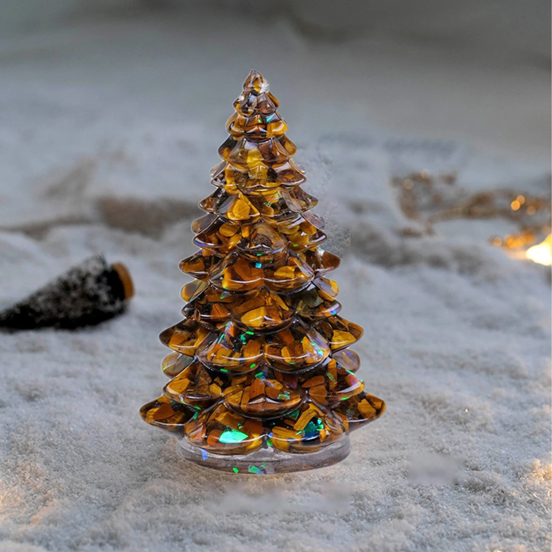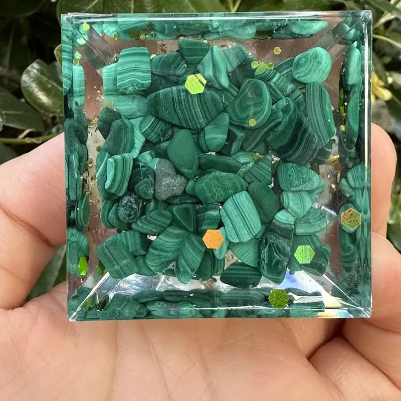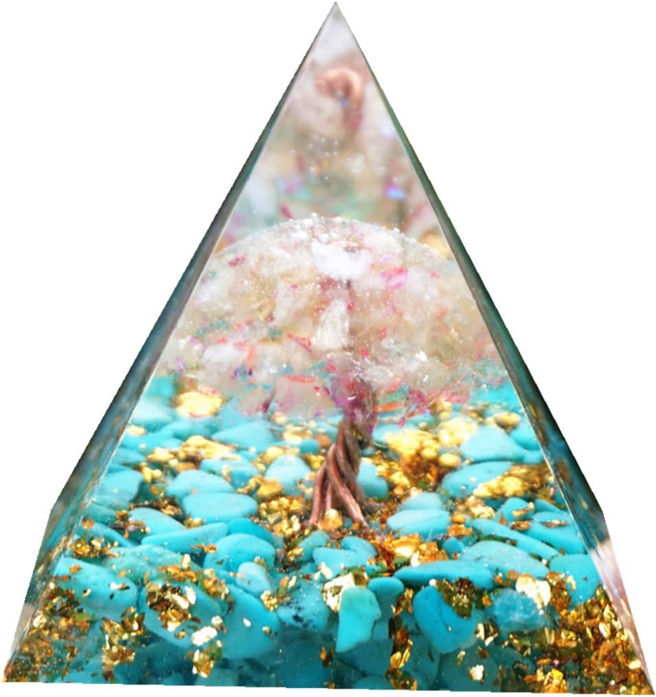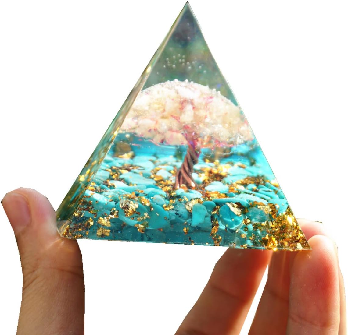 This stunning series of orgone pyramids merges the symbol of the Tree of Life with the marvelous power of nature, where heart and soul unite. Each pyramid is uniquely crafted, richly adorned with gemstones, and features trees made of copper and gold leaf, offering a breathtaking visual experience. These beautiful creations serve not only as aesthetic delights but also as true energy centers that enrich the space they inhabit.