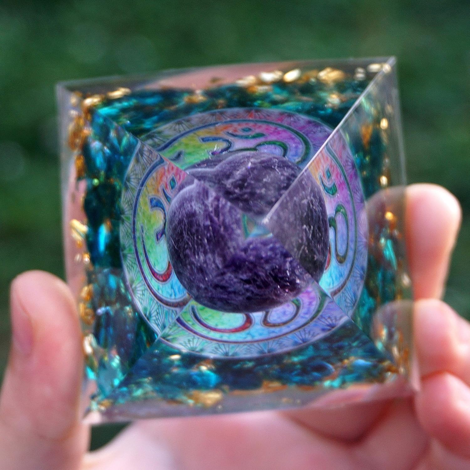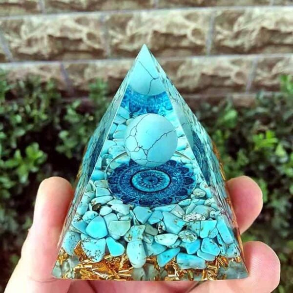 Discover the enchanting world of the "Universal Energy Collection," where cosmic energies meet earthly beauty! Each unique piece in this special orgonite pyramid series features a stunning crystal orb that combines the power of minerals with spiritual energies. The pyramids also incorporate gold leaf and carefully selected gemstones to enhance their energetic effects.